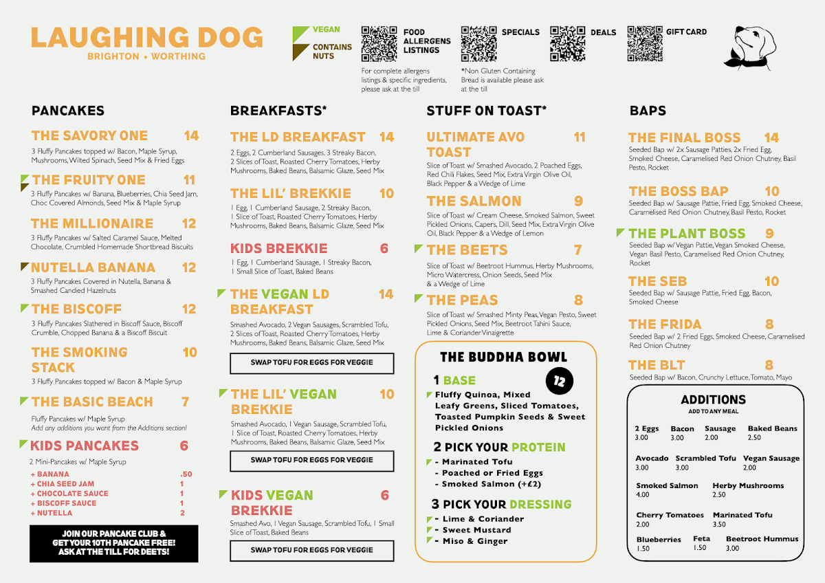 Welcome to Laughing Dog Brighton - Café & Shop, a delightful haven located in the scenic Brighton Marina. This café offers an impressive menu that caters to diverse palates, with a strong emphasis on vegan offerings. Diners rave about the delicious pancakes and bagels, making it a go-to spot for breakfast and brunch.